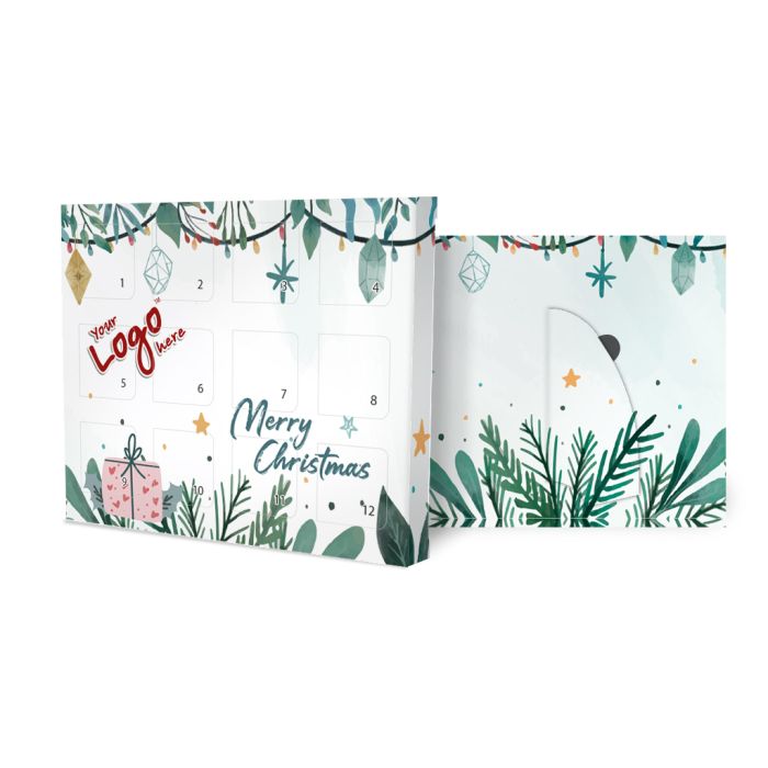 12 Day Chocolate Calendar, Bespoke Advent Calendars Made to order, your own bespoke design printed all over, or use our existing designs and just add your logo.