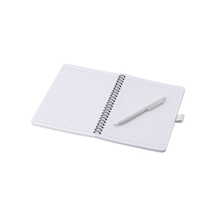 Promotional A5 Antibacterial Notebook & Pen Set. Antibacterial notebook with pen, blue ink, in pen loop. The notebook has 70 lined sheets. Approximately A5 size.
