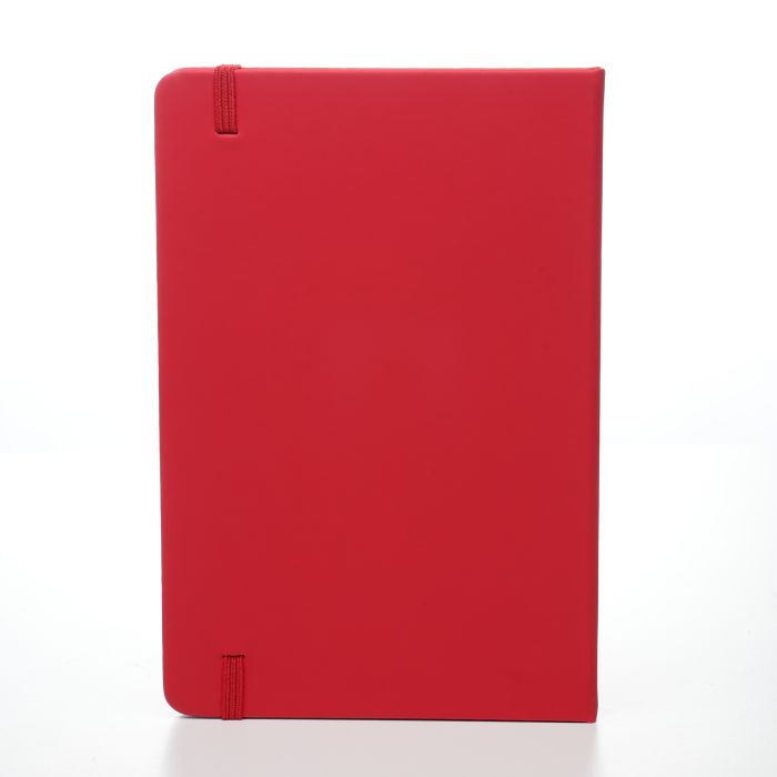 A5 PU soft finish notebook with 80 lined sheets (60gsm), elastic closure and ribbon bookmark.