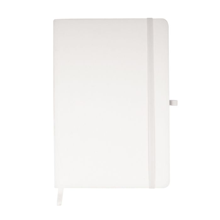 'A5 Colour Nebraska Recycled Notebook' WHITE with WHITE bookmark + elastic