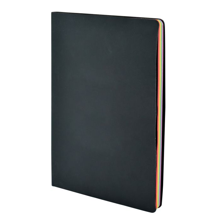 Prism' A5 BLACK PU cover notebook with 90xColoured Pages-split over 6 colours