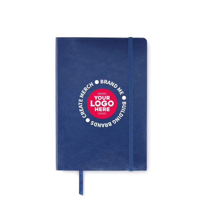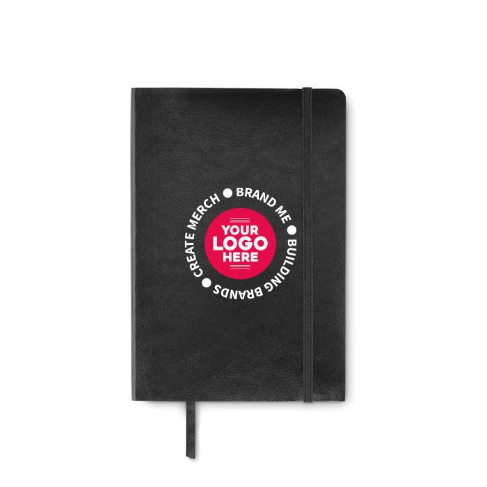 A5 notebook with soft recycled PU (81% recycled polyester and 19% PU) cover. Casebound. 160 lined pages (80 sheets recycle papers). Matching elastic closure strap and ribbon bookmark. Expandable inner pocket in the back.