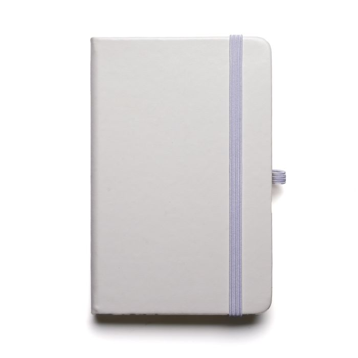 'A6 WHITE MOLE NOTEBOOK' , with WHITE bookmark, pen loop, closure.