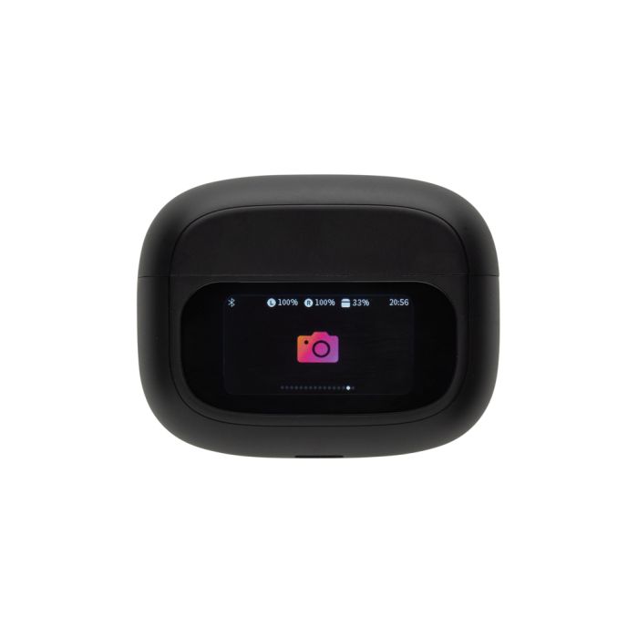 Commute, work or travel in silence with these ANC earbuds. The ANC function makes sure outside noise is reduced for optimal concentration. The charging case comes with an integrated TFT touch screen which offers many unique features: find your earbuds, adjust volume, select next song, answer calls and change language (select between 8 languages) and many more. The earbuds and charging case are made with RCS (Recycled Claim Standard) certified recycled ABS. Total recycled content: 43% based on total item weight. RCS certification ensures a completely certified supply chain of the recycled materials. The earbuds use BT 5.3 for automatic pairing without any hassle and a stable connection. The earbuds have a 30 mAh battery that allows a play time of up to 6 hours (with ANC) and can be re-charged in 1.5 hours in the charging case. ANC degree: 23 DB. Including 3 size eartips. IPX 4 waterproof. With ENC microphone for clear calls. Packed in FSC kraft box.