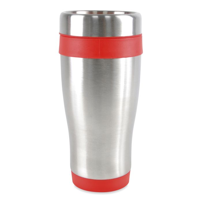 'Ancoats' 400ml Stainless Steel Travel Mug with RED 186c trim and lid