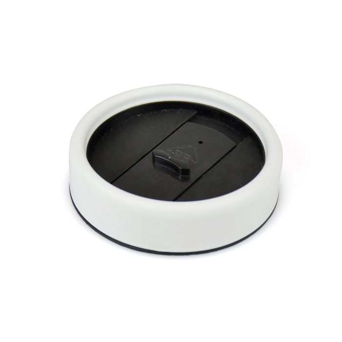 400ml double walled tumbler made from stainless steel with a matt white finish and contrasting black trim. PP plastic interior, screw top lid with secure slide slipper. BPA & PVC free.