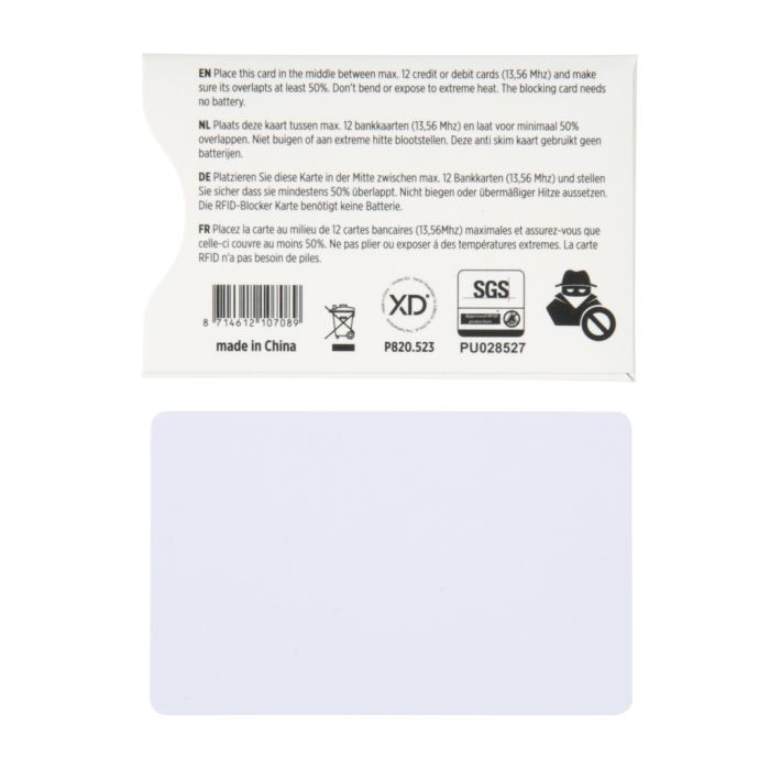 Printed Anti Skimming RFID Shield Card For Wallets And Purses. Make any wallet, purse or money clip RFID & skim safe. This card draws energy from NFC/RFID scanners to power up and instantly creates an electronic field making all 13.56 Mhz cards invisible to the scanner. No battery needed. 24/7 protection by patented E-field technology against electronic pickpocketing.