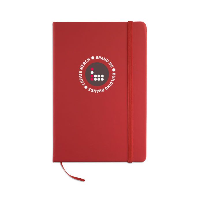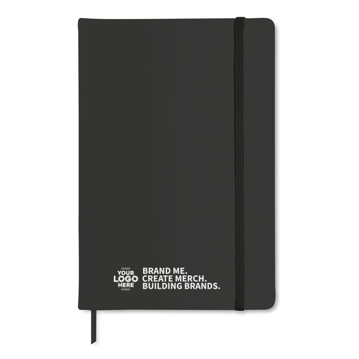 Printed ARCONOT A5 Notebook PU Hard Cover Plain Pages. A5 notebook with hard PU cover and 96 blank pages closed by an elastic band.