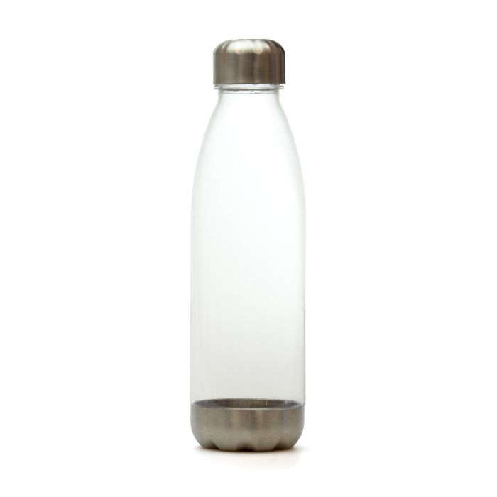 'Ashford Revive Recycled' TRANS 650ml plastic drinks bottle SILVER lid & base
