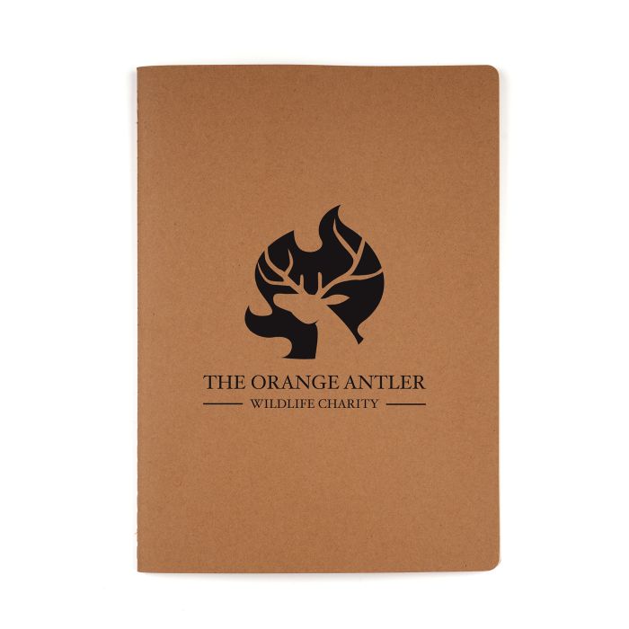 B5 100% recycled Kraft paper graphic notebook, with 40 recycled lined sheets inside and fully customisable cover.
