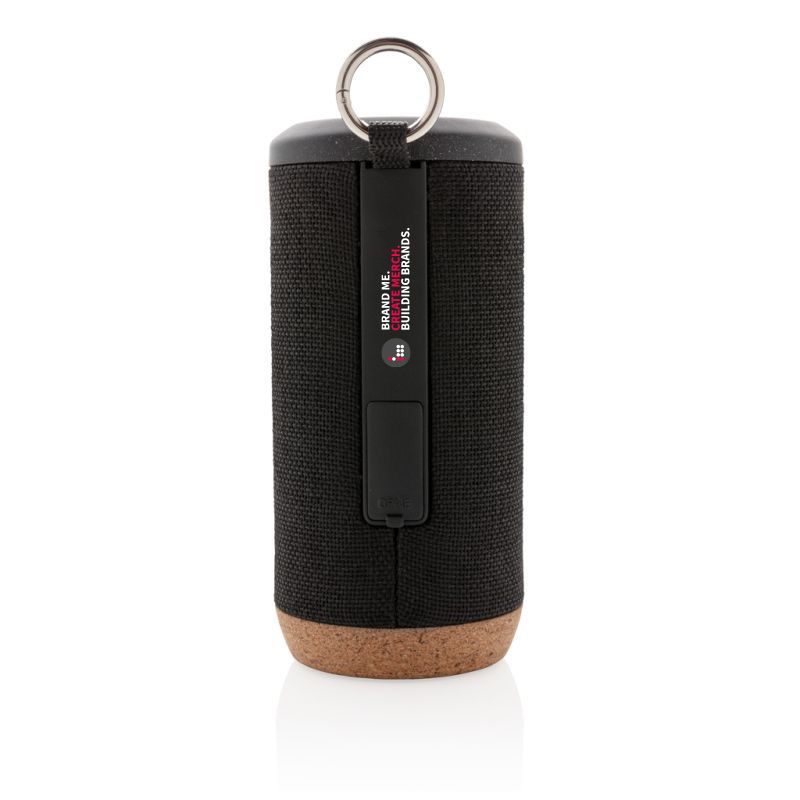 Promotional Baia Wireless Speaker With Cork Detail. Sustainable 10W speaker made from carefully sourced materials. The speaker is made out of durable waterproof fabric and the bottom is made out of organic cork. The Baia delivers an amazing sound and bass experience and due to the IPX 5 waterproof rating it’s suitable to use in the garden or take to the beach. The Baia uses BT 4.2 for easy operation and with a battery of 2000 mah it allows you to play music up to 6 hours non-stop. Operating distance up to 10 metres. The Baia comes packed in a plastic free packaging to avoid unnecessary waste. Registered design®