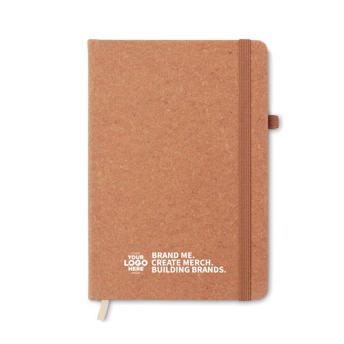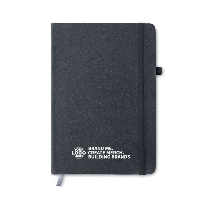 Promotional BAOBAB A5 Notebook With Recycled PU Cover. A5 notebook with a recycled PU cover. It has 160 lined pages (80 sheets) and can be closed with the elastic band. There is a ribbon for you to keep track of where your latest notes are and there is a band to hold your pen. This is one of our classic and essential notebooks for school or work, upgraded with a recycled PU cover.