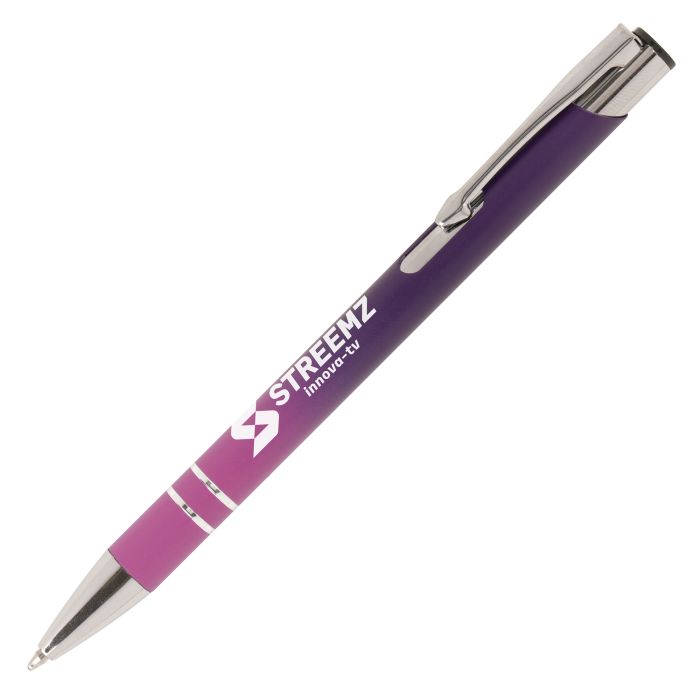 Recycled aluminium ball pen that offers excellent value for money elevated by a metal clip for a higher end feel. The stunning ‘ombre’ effect makes this a memorable promotional piece.