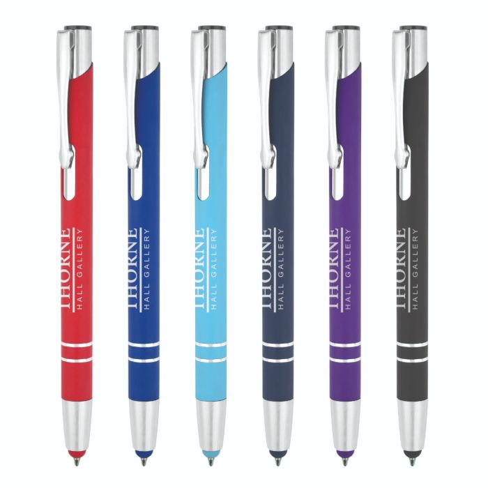 A Recycled soft feel stylus version of one of our most popular metal pens in a range of vibrant colours. Marking is by Engraving or digital print.