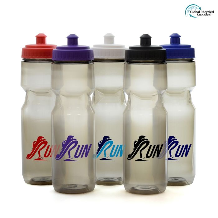 The bottle that gives back - for every Bilby Sports Bottle purchased, 20p goes to HUGS charity to provide sanitation, latrines and water catchment facilities in Uganda. 600 bottles builds 1 stand pipe, directly helping 25 people to access a safe water source. Made from certified recycled ocean bound PET plastic, the Bilby Sports Bottle is durable and reusable, with potential for a long life of boosting your brand exposure, only then to be recycled again! 750ml, single walled with smoked black recycled PET plastic body, coloured plastic screw on lid (PP, LDPE and silicone) and a push/pull spout. From gym goers to sports teams, kids to adults, this is a great all-round eco-friendly promotional gift to advertise your business. BPA and PVC free. Choose from black, blue, purple, red and white lid and order yours today.