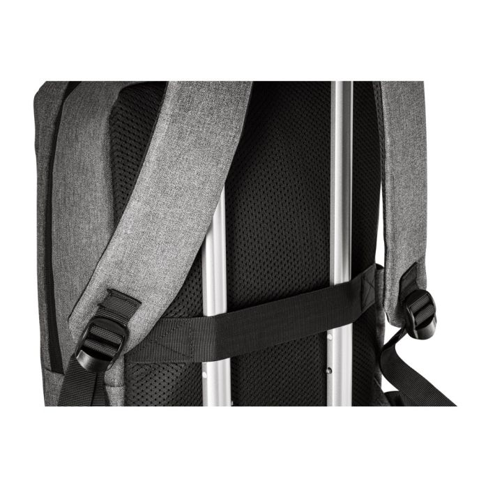 Laptop backpack designed to simplify your work and travel routine. It can be carried on your back or using the handle on a trolley, ensuring greater convenience.Outer material: high-density 300D polyesterInner material: 210D polyesterLaptop/tablet pocket: 15'6“/10'5”Capacity (L): 14Compartments: 1 padded main compartmentExterior pockets: 1 front zippered pocket and 1 side pocketBack panel: padded with trolley strapAdditional features: reinforced and padded handleDimensions: 320 x 410 x 120 mm