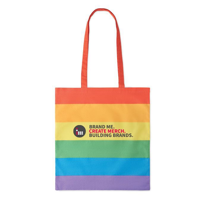 Printed BOREALIS Cotton Rainbow Tote Bag. Rainbow cotton shopping bag with long handles. 200 gr/m².