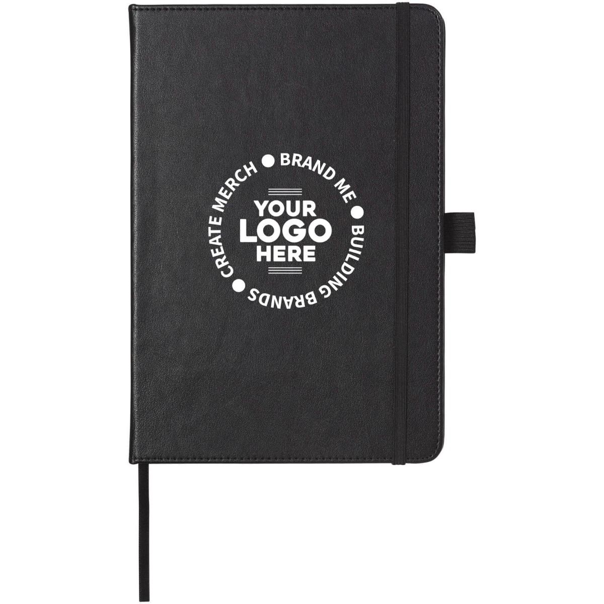 Promotional Bound A5 Vegan Leather Notebook Present in Gift Box. Exclusively designed A5 sized notebook with 80 sheets of 80gsm cream lined paper, interior back pocket and pen loop. Packed in a ''LUXE'' gift box.