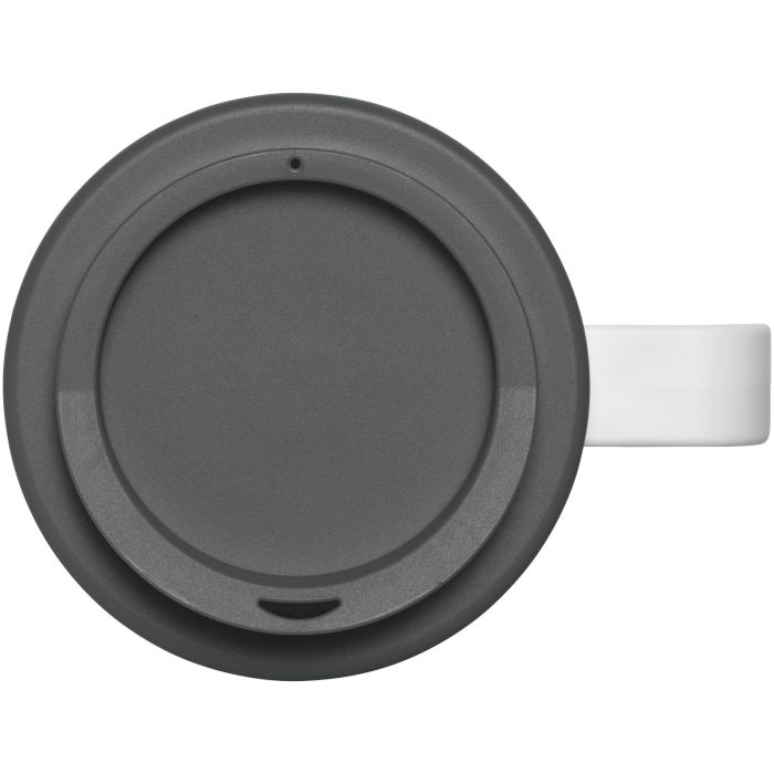 Double-wall insulated mug with twist-on lid and integrated handle. Mug features a full colour wraparound design moulded to the product, making it long-lasting and durable. EN12875-1 compliant, dishwasher safe, and microwave safe. Volume capacity is 350 ml. Mug is fully recyclable. Mix and match colours to create your perfect mug. Contact customer service for additional colour options. Made in the UK. Presented in a white gift box.