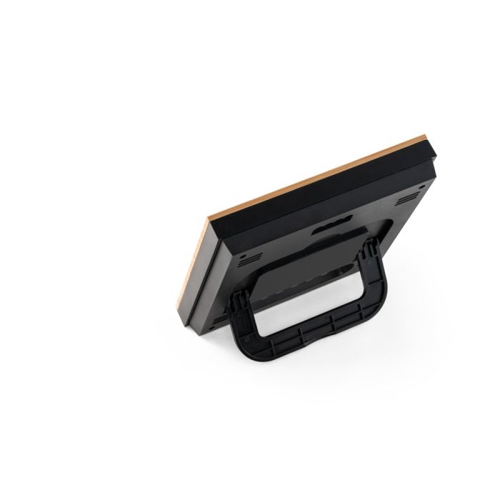 ABS and bamboo desk station with the following functions: clock, alarm, humidity monitor and thermometer. Includes two AAA batteries. Supplied in a kraft paper gift box. 130 x 130 x 21 mm