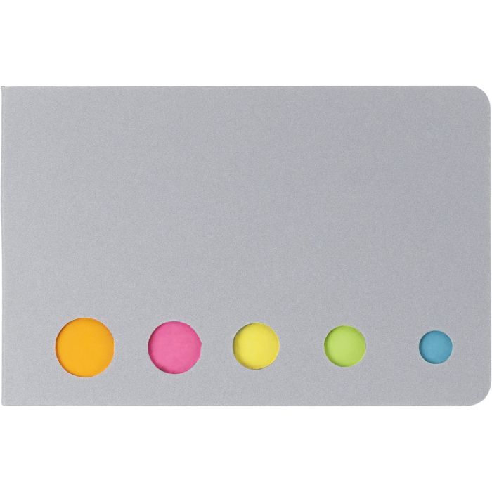 Card cover holding five different coloured self adhesive memos, each with twenty sheets.