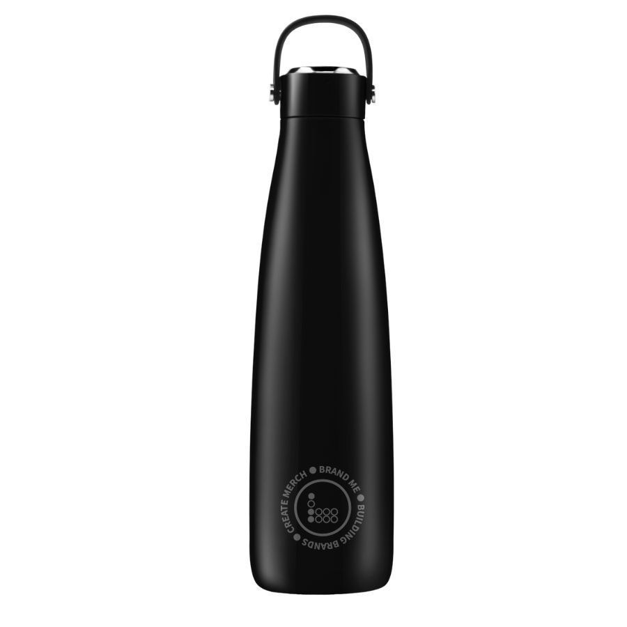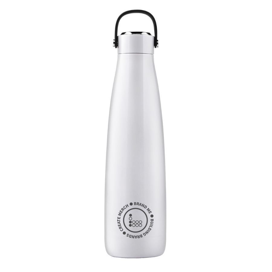 Promotional Cari Insulated Bottle 500ml. The Cari insulated bottle is a brand new sleek design for winter 2023. The modern styling features a built-in TPU handle, rounded, smooth neck for drinking, copper lining for heat retention and contemporary powder coated exterior. The Cari is 500ml and will keep drinks hot for 12 hours, cold for 24.