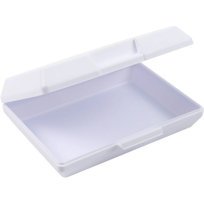 Plastic lunchbox. The sides of the top and bottom are bevelled. Size: 17 x 13 cm.