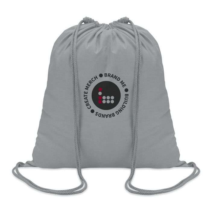 Printed COLORED Cotton Drawstring Bag. Drawstring bag in cotton. 100 gr/m². Produced under a certified standard for the use of harmful substances in textile.