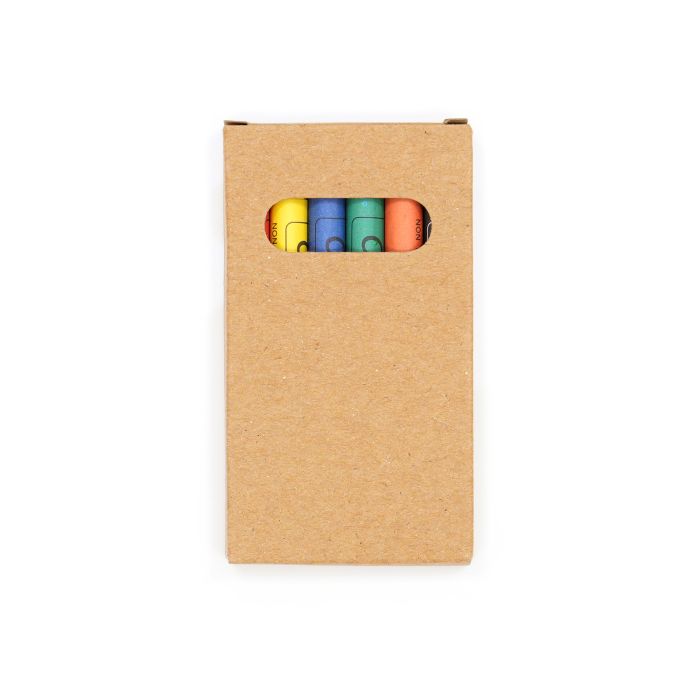 Small non toxic wax crayon set in card box. Includes 6 crayons per pack.