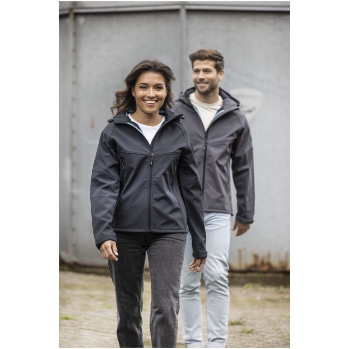 The Coltan women's GRS recycled softshell jacket – a fusion of style and performance. Developed with the environment in mind, this jacket is GRS certified, featuring a woven fabric composed of GRS certified recycled polyester, virgin polyester, and elastane. The 280 g/m² construction offers a perfect balance of durability and comfort, while the three-layer bonded design of woven, TPU, and microfleece ensures maximum protection against the elements. With an 8000 mm waterproof rating, the Coltan jacket keeps you dry and shielded from rain, while the 2000 g/m² breathable feature allows for excellent ventilation, preventing moisture and overheating during intense activities. This jacket is equipped with GRS certified trims and accessories, including zippers, drawstring, and cordlock. The adjustable cuffs with hook and loop closure allow you to customise the fit for maximum comfort and ease of movement. Embrace style and performance - the Coltan is the ideal companion for outdoor adventures, offering unbeatable functionality. With GRS certification guaranteeing a 100% certified supply chain, this garment truly represents a more sustainable choice. This jacket is designed with a fitted shape for a feminine look.
