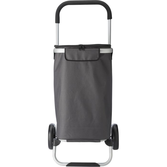 Polyester (320-330) cooler, shopping trolley with aluminium frame and an EVA foam grip. The trolley needs to be self-assembled before use. 20L Capacity.
