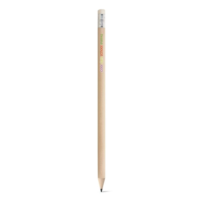Sharpened wood and graphite pencil with rubber. Degree of hardness: HB. ø7 x 190 mm