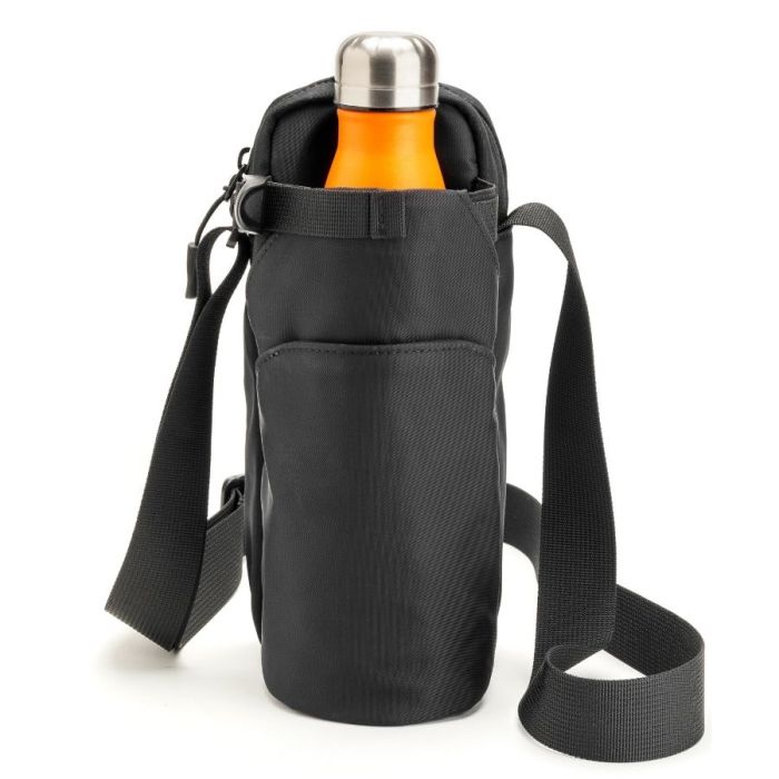 Cross Body Water Bottle Sling - Nylon. The Hip bag ensures your drinks bottle is always by your side. The specifically designed, adjustable bottle compartment fits up to approximately 800ml bottles ensuring your stay fully hydrated on your travels. On the back is a special compartment to keep your mobile safe but accessible. Inside is deep, zipped pocket ideal for keys and valuables. Also available in RPET and slightly larger size.