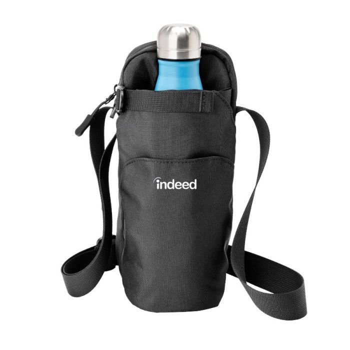 Cross Body Water Bottle Sling RPET. The Hip RPET is manufactured from 3 PET plastic bottles rescuing them from landfill whilst keeping your bottle by your side. The specifically designed, adjustable bottle compartment fits up to 950ml bottles ensuring your stay fully hydrated on your travels. Also available in nylon in slightly smaller size. Features a special compartment for mobiles – easy for you to access but safely facing your body and dip compartment ideal for keys, valuables or even the sun cream!