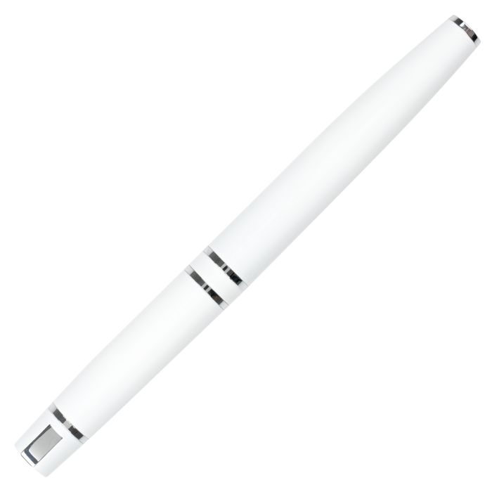 DUKE roller balll in gloss WHITE with chrome trim, black ink