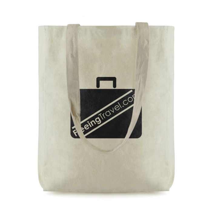 Natural 10oz portrait shaped cotton shopper with long handles and gusset
