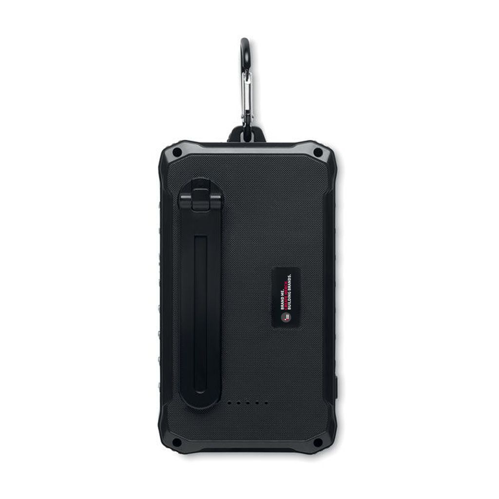 DYA 8000 mAh Solar Dynamo Charger. Uniique Solar power bank with powerfull 8000 mAh with hand crank dynamo. Includes 1 LED light and 100 lumens. Type C input/output, 2 USB-A output. Output current DC 5V/2.1A.