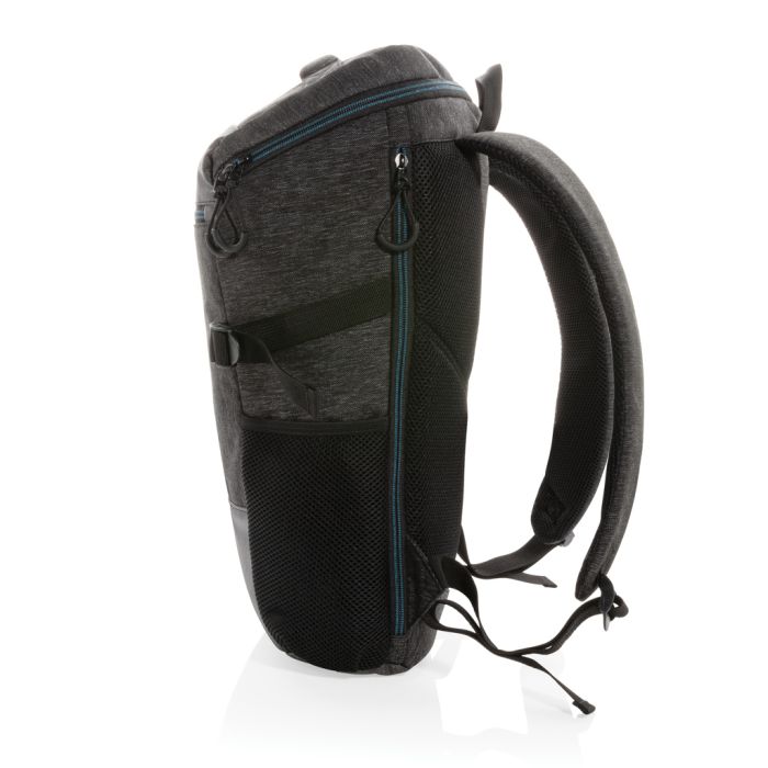 Printed Easy access laptop backpack PVC free. This 900D easy access laptop backpack has all the space you'll need in a day bag or carry-on. The roomy main compartment has a 15.6" laptop pocket and a small pocket to hold quick grab items. The big zipper opening makes it easy to see what's in your backpack at a glance. PVC free.