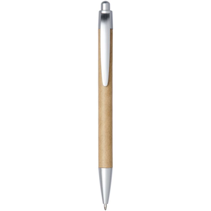 Promotional Eco Pen Made From Recycled Paper Black Ink. Eco friendly ballpoint pen with click action mechanism, with a barrel made of recycled paper, and silver sprayed ABS trims. Recycled paper colour may vary.