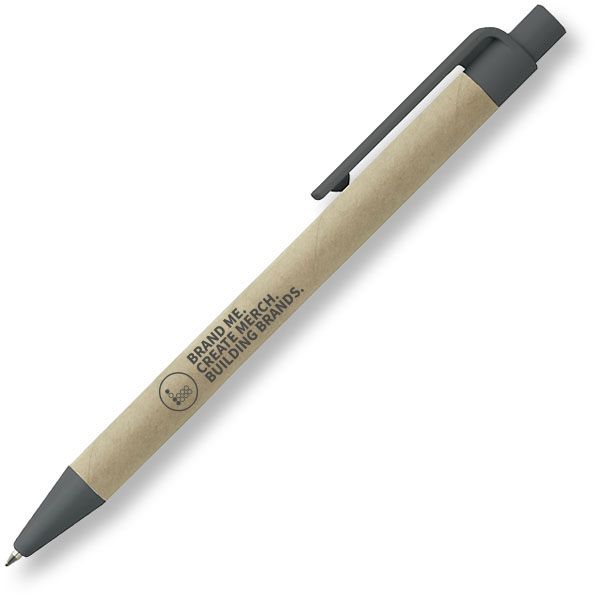 Promotional Ecoretract Pen. Eco-friendly promotional push button pen made from recycled cardboard and recycled plastic parts. Good print area. Black ink refill.