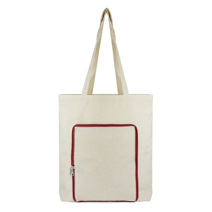 Farrington NATURAL 8oz foldable cotton shopper with RED zipper close