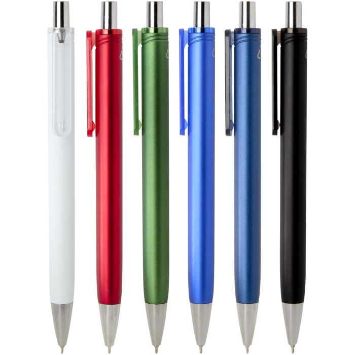 Promotional Feld RCS Recycled Ballpoint Pen with Metallic Finish (black ink). The Feld ballpoint pen with metallic finish combines everyday functionality with a sleek look. Made from RCS certified recycled ABS plastic, it features a shiny metal sprayed finish with polished chrome accents. Its smooth push mechanism and semi-gel ink refill ensure a comfortable and smooth writing experience. Pen ink colour: black. Writing length: 500 m. Niz size: 0.7 mm.