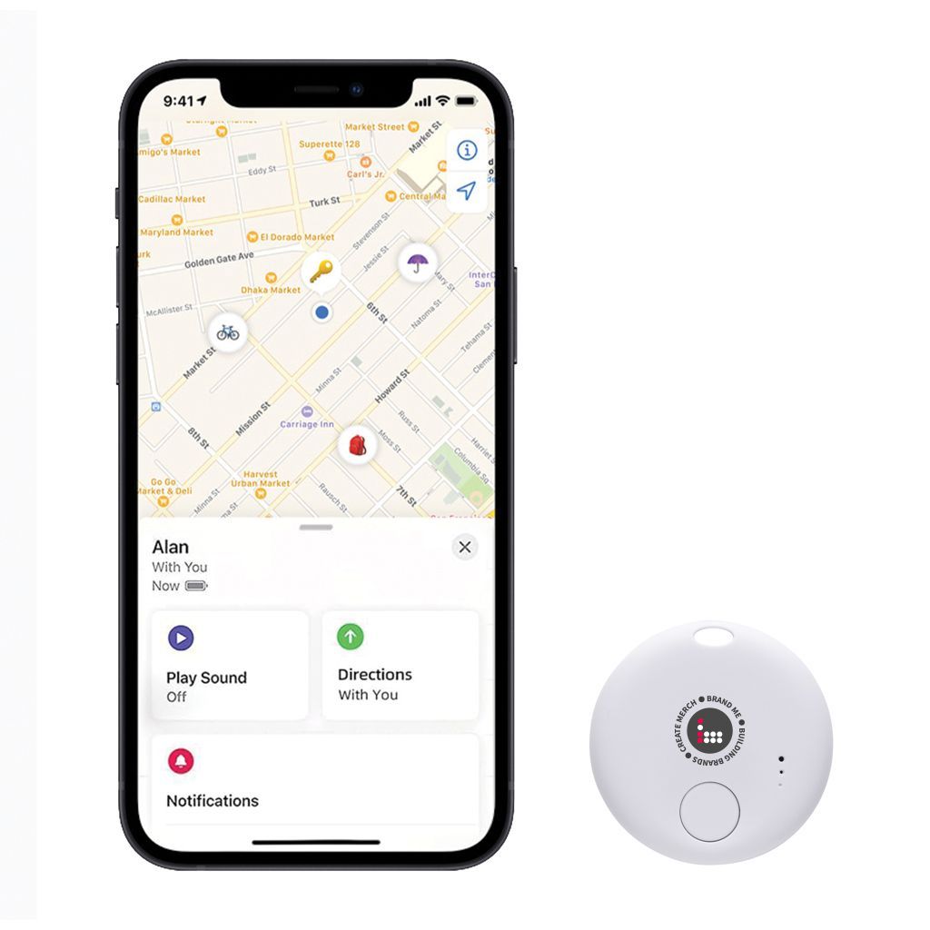 Promotional FindMate RCS Recycled Plastic Item Finder. Keep track of your favourite items, no matter where in the world you are with this recycled ABS item finder. Attach the item finder to your wallet, key or add it to a bag, luggage or even your pet to locate it easily using the Apple Find My App. Compatible with all Apple devices (iphone, ipad, iwatch, MAC) With lost mode to notify you when you are leaving your belongings.