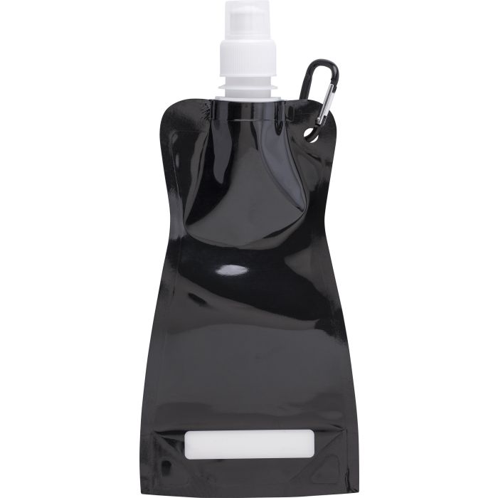 Foldable PP transparent plastic water bottle (420ml) with a carabiner belt clip. White (02) and silver (32) are not transparent.