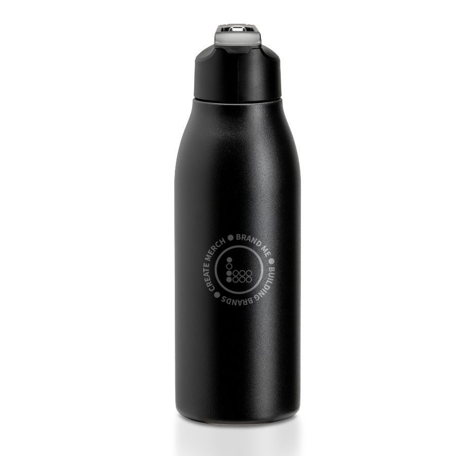 Fuel Insulated Stainless Steel Sports Bottle 500ml. If you are looking for a great looking, quality and highly functional sports bottle then look no further than the Fuel. Manufacturer from marine grade stainless steel, the Fuel sport bottle is made to last whilst keeping drinks hot or cold. The Fuel features an integrated flip up lid with sipping spout/straw making it super easy for thirst quenching cold drinks. For colder days when you need to keep warm simply switch to the interchangeable screw lid to ensure your favourite brew stays hot. The flip lid has a loop for easy carrying and snaps securely shut for travel. As you’d expect a bottle like the Fuel comes in quality packaging – bottles are supplied in compostable liners inside a printed kraft box for easy recycling.