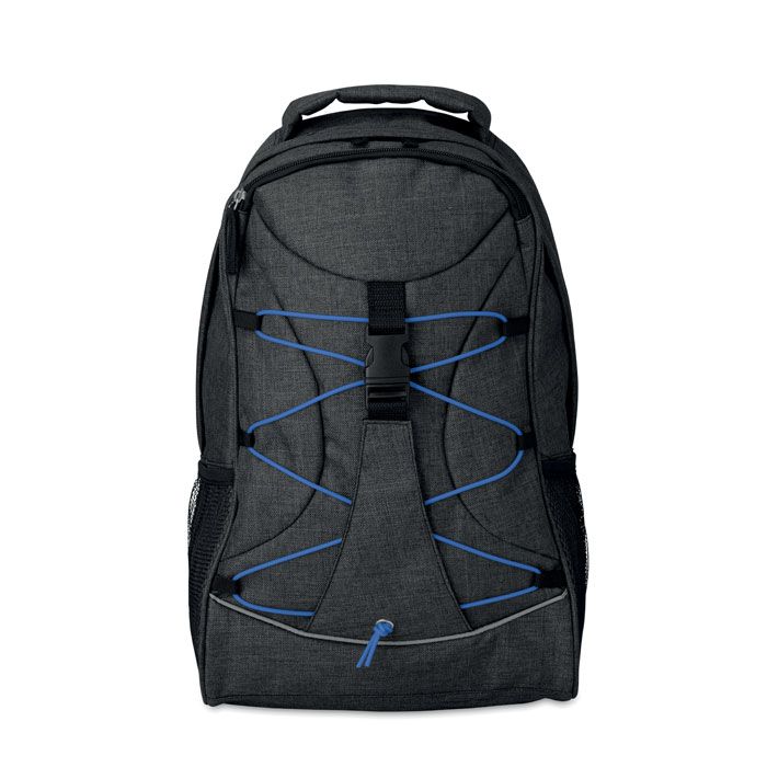 Printed GLOW MONTE LEMA Backpack With Glow In The Dark Cord. Backpack in 600D 2 tone polyester with colourful contrasting facing and glow in the dark cord on the front panel. Mesh pockets on both sides.