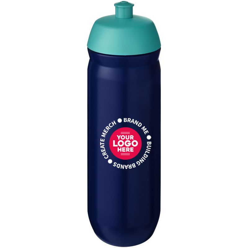 Branded HydroFlex Sports Bottle 750 ml UK Made. Single-walled sport bottle with a screw-fix pull-up lid. Made from flexible MDPE plastic, this squeezy bottle is perfect for sporting environments. Volume capacity is 750 ml. Contact us for additional colour combinations. Made in the UK.
