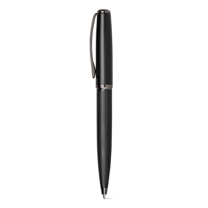 Set with metal ball pen with twist mechanism and rollerball, both with clip. Supplied in a cushioned gift box. Blue ink. Ball pen: ø13 x 137 mm | Roller: ø13 x 137 mm | Box: 180 x 30 x 56 mm