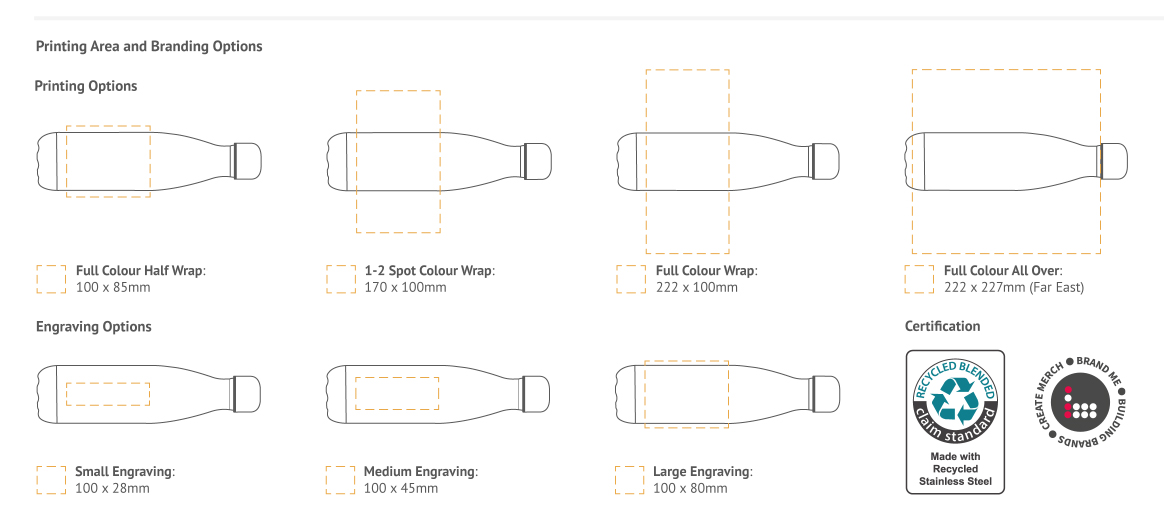 Printing Options: 1-4 Spot Colour, Full Colour, Laser Engraving, 1-2 Spot Colour