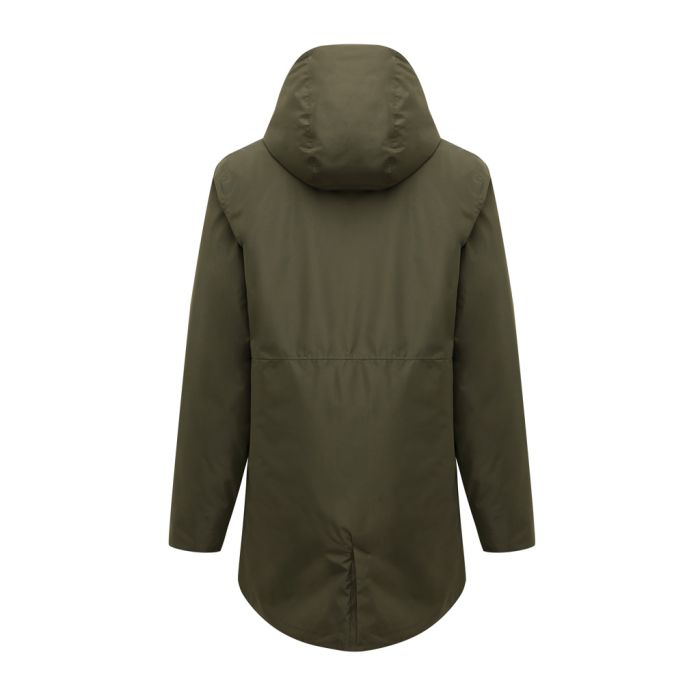 Unisex padded waterproof parka, made from 100% recycled polyester. The jacket is 3.000 mm waterproof, breathable and wind resistant. It has all features of a classic parka: longer back length, back slit, 2-way CF reversed zipper, covered by an extra front placket with four hidden snaps, clean sleeve cuffs with an extra inside half cuff, hood with stoppers at inside collar, horizontal deco seams. It is padded with 100% recycled polyester sheets and is lined with fine taffeta. On the inside there is a hidden zip at bottom hem and left wearer’s chest for easy decoration. Full garment is stitched with recycled polyester sewing thread. At back neck there is a tear-off size label with an iqoniq craft hangtag, care label at the left inside side seam. The use of genuine recycled fabric material and environmental impact claims are guaranteed, by using the AWARE™ disruptive physical tracer and blockchain technology. By scanning the QR code, you will gain access to a dedicated digital passport.